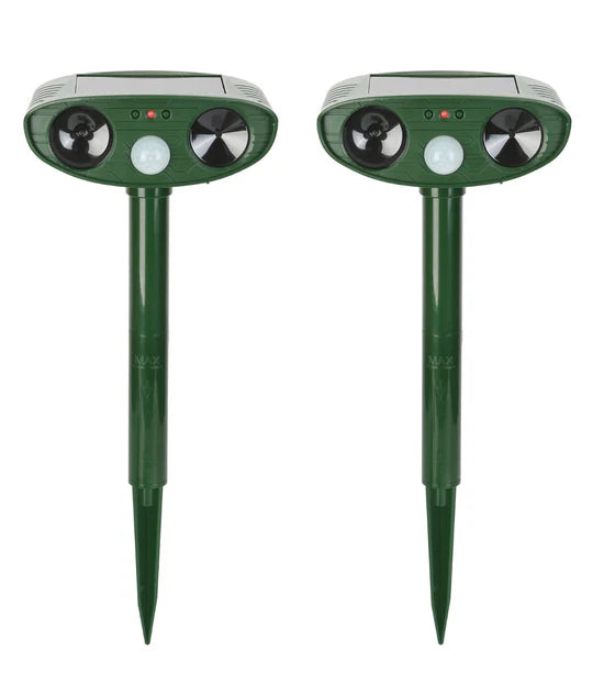 - ECO-FRIENDLY AND SIMPLE TO USE: It naturally chases out squirrels and other animals without causing harm to them. Suitable for all weather, made of waterproof and anti-UV material. Solar energy technology is cordless, rechargeable, and self-charging in the sun. You no longer need to bother about buying new batteries! The repeller scares animals with its FLASHING light function.